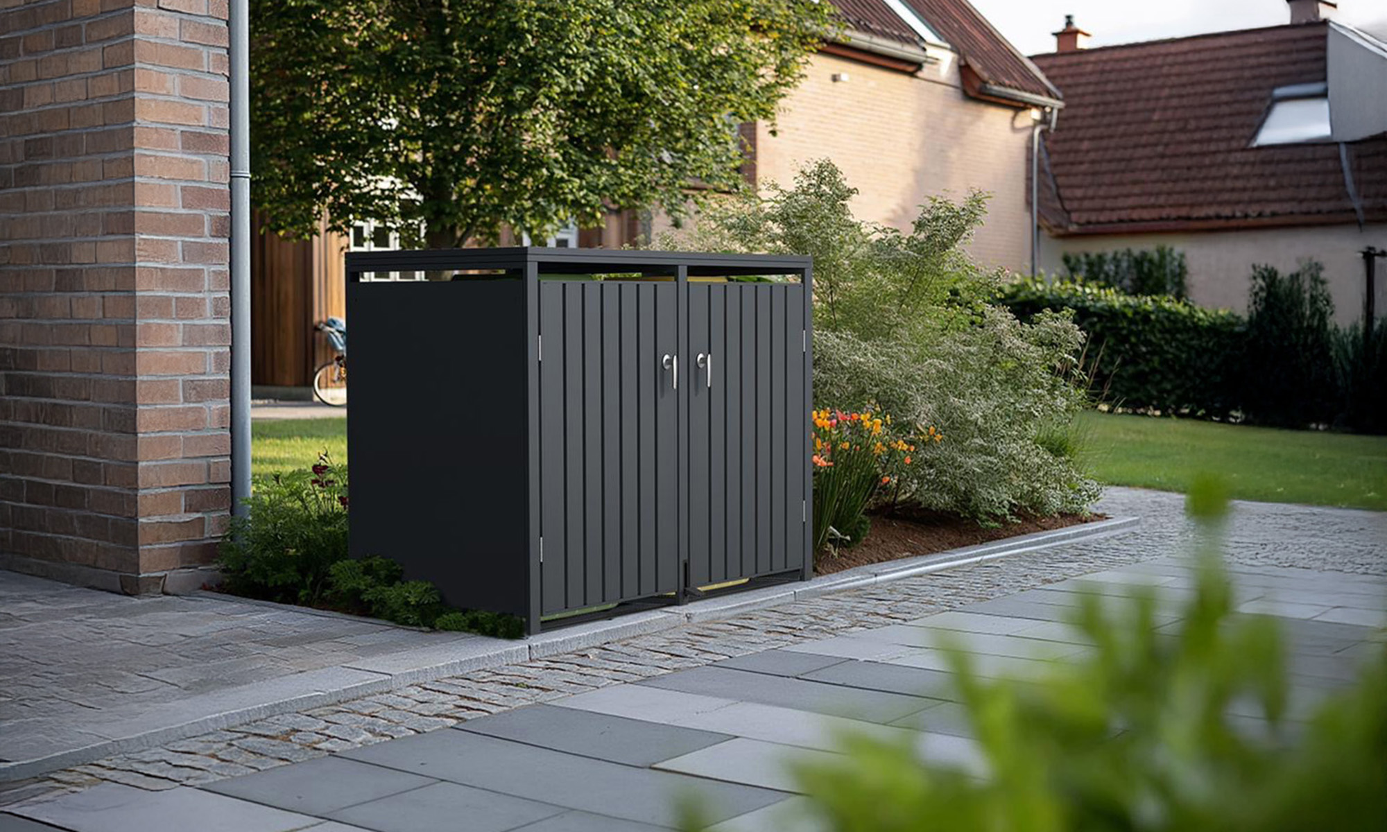 Anthracite Galvanized Steel Wheelie Bin Storage Pedal Opening | Double