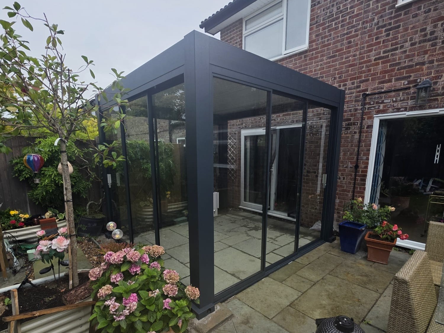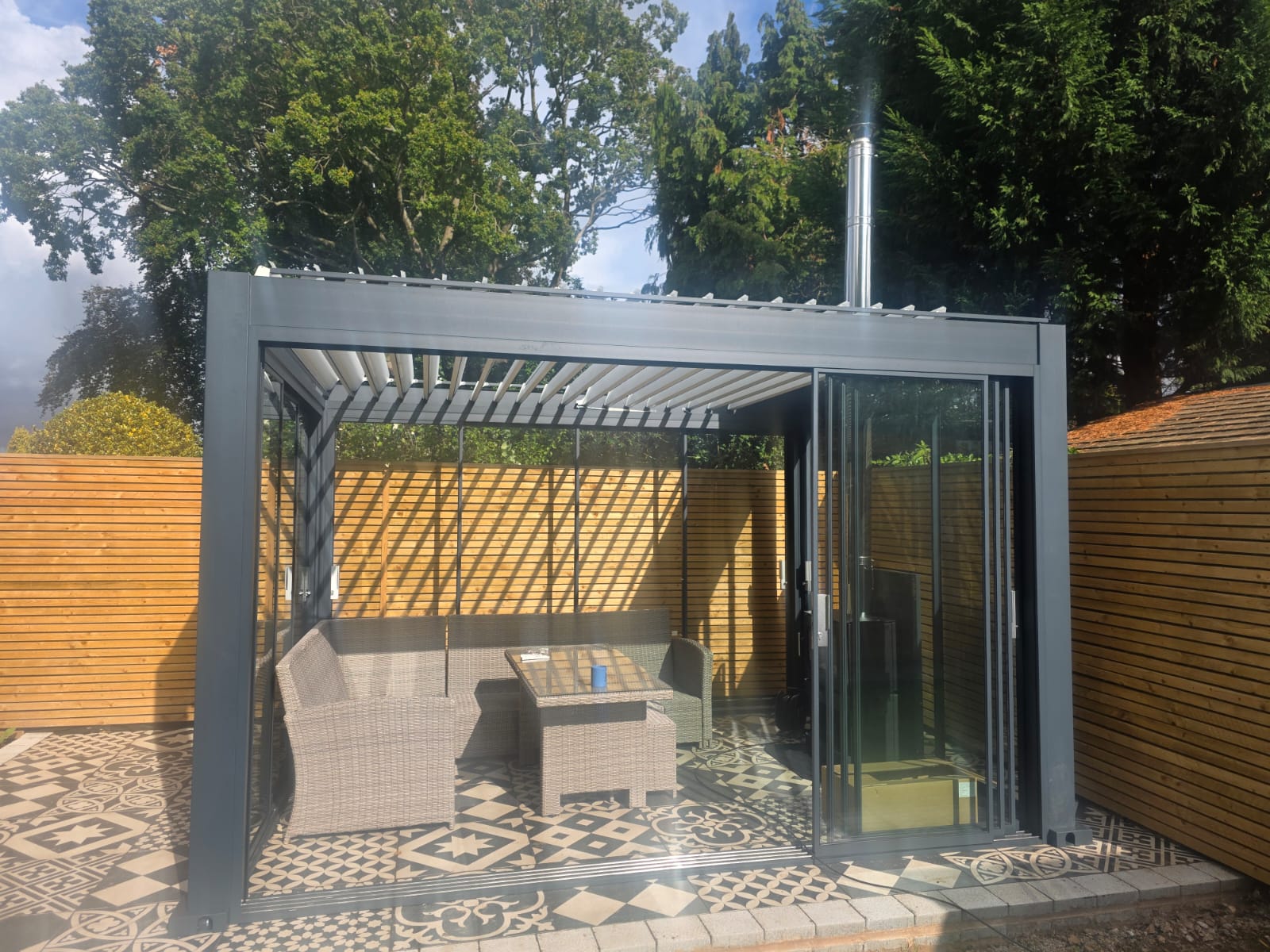 The minimalist frame looks great in powder-coated aluminium and is an absolute cinch to wipe down and maintain and keep it looking like new! The white louvered roof allows you to enjoy the outdoors whatever the weather.